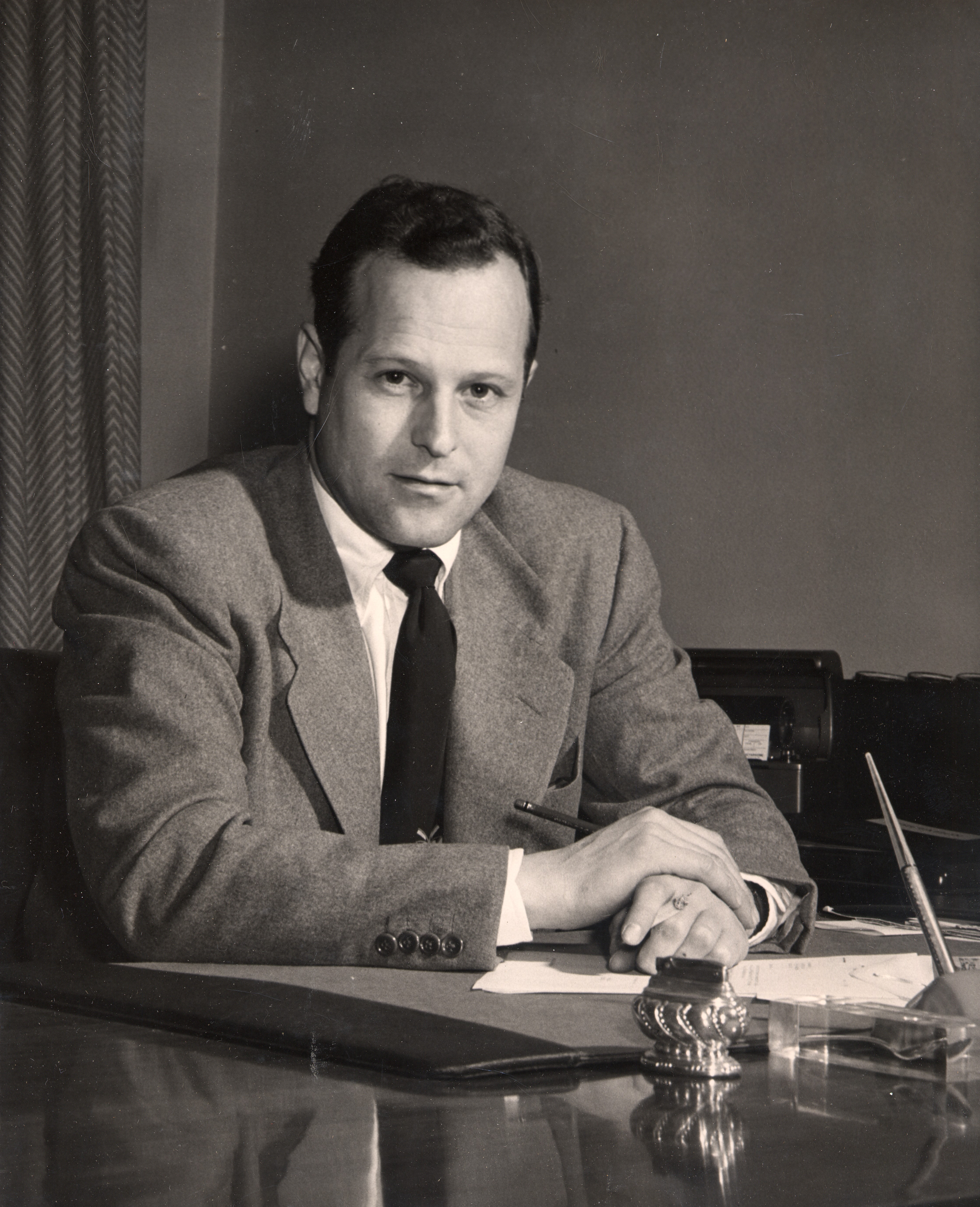 My very first day, June 3rd, 1974. My first day at work, 10 o’clock I am told that everybody goes in for coffee in the cafeteria. So I went in with a group of guys from the advertising department, and they had a machine, a coffee machine. So I went up to the coffee machine, and I put in a quarter. Now the cafeteria has probably 30 [or] 40 people now in there, sitting around. And it’s pretty loud, everybody’s talking. You know, you had a 15-minute break. So I put my quarter in, and nothing happened. So I hit the return button, and nothing happened. This is my first day, so I’m pretty nervous. I think I’m 22 years old. And all the sudden, someone taps me on the shoulder, and I turn around. And there’s an older gentleman there, and he says, “What seems to be the problem, sonny?” I said, “Well, I put a quarter in, but nothing’s happening.” He says, “Step to the side.” So I stepped to the side, and this gentleman gave this machine a swift kick, literally kicked this machine. And the coffee cup comes down, and the coffee starts pouring. But of course, when somebody kicks a machine like that, the noise, everybody stopped. Now you have 30 [or] 40 people that are all looking up because this noise was just absolutely incredible. I’m redder than a beet. And I looked back, and this gentleman looked at me and he said, “Just like the horses, sometimes you’ve got to kick them to get them to run.” And I said “Okay,” and I said, “Well thank you very much sir.” And he says, “So what is your name?” I said, “I’m Bob,” and he says, “Well I’m Pete.” We shook hands, and I said, “Well Pete, very nice meeting you, and thank you so much for the help.” And he said, “Bob, anytime.” Anyways, I leave, I grab my cup of coffee. I go back to the table, and one of the guys I was with says “What the heck just happened?" And I told him that this gentleman helped me get my coffee, and he kicked the machine. He says, “Do you have any idea who that is?” And I said, “Well yea, I know who it is, it’s Pete.” He says, “Pete, that’s Pete Noyes, chairman of the board.” And I said, “Well he’s a really fine gentleman, he helped me out, and he’s a real nice guy.” From that day forward, every single time I saw Pete in the hallway, he always said, “Hi Bob, how you doing? You having any problems with that coffee?” And well, he was a wonderful man.
